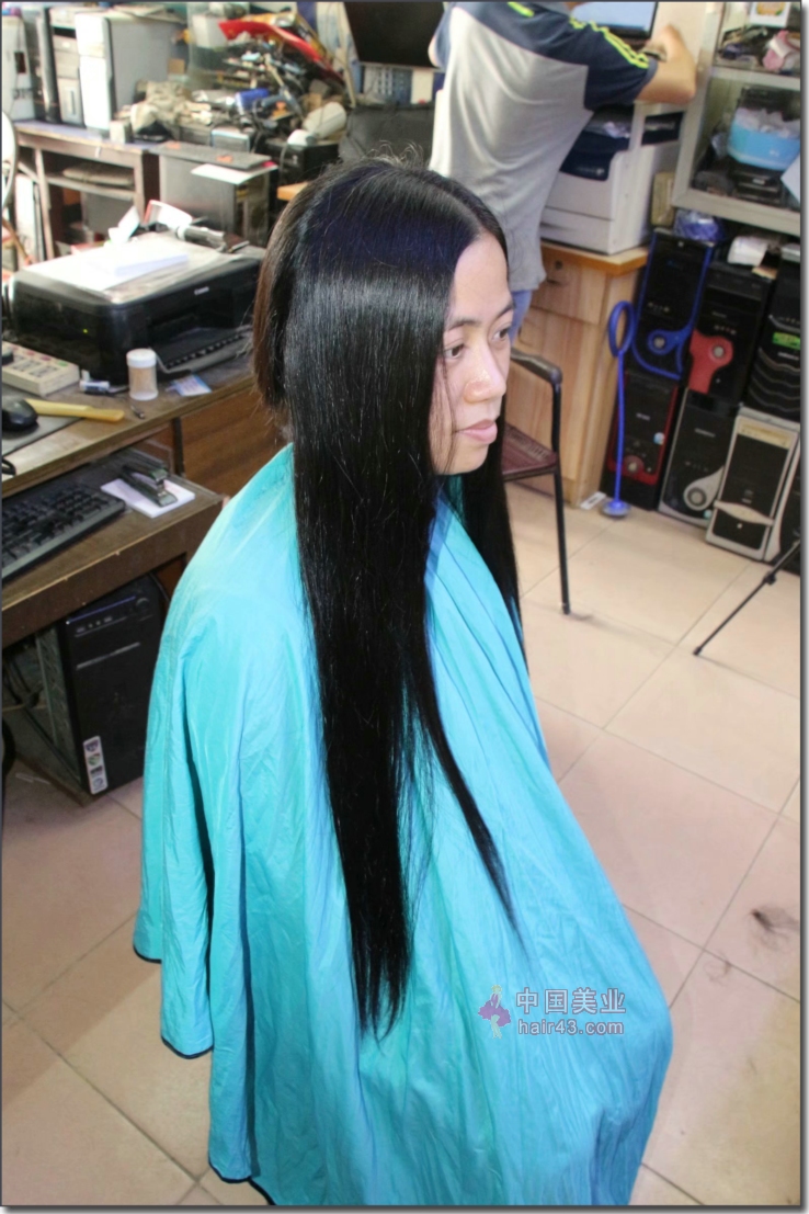 剪去清秀女孩过臀长发-发之美441#