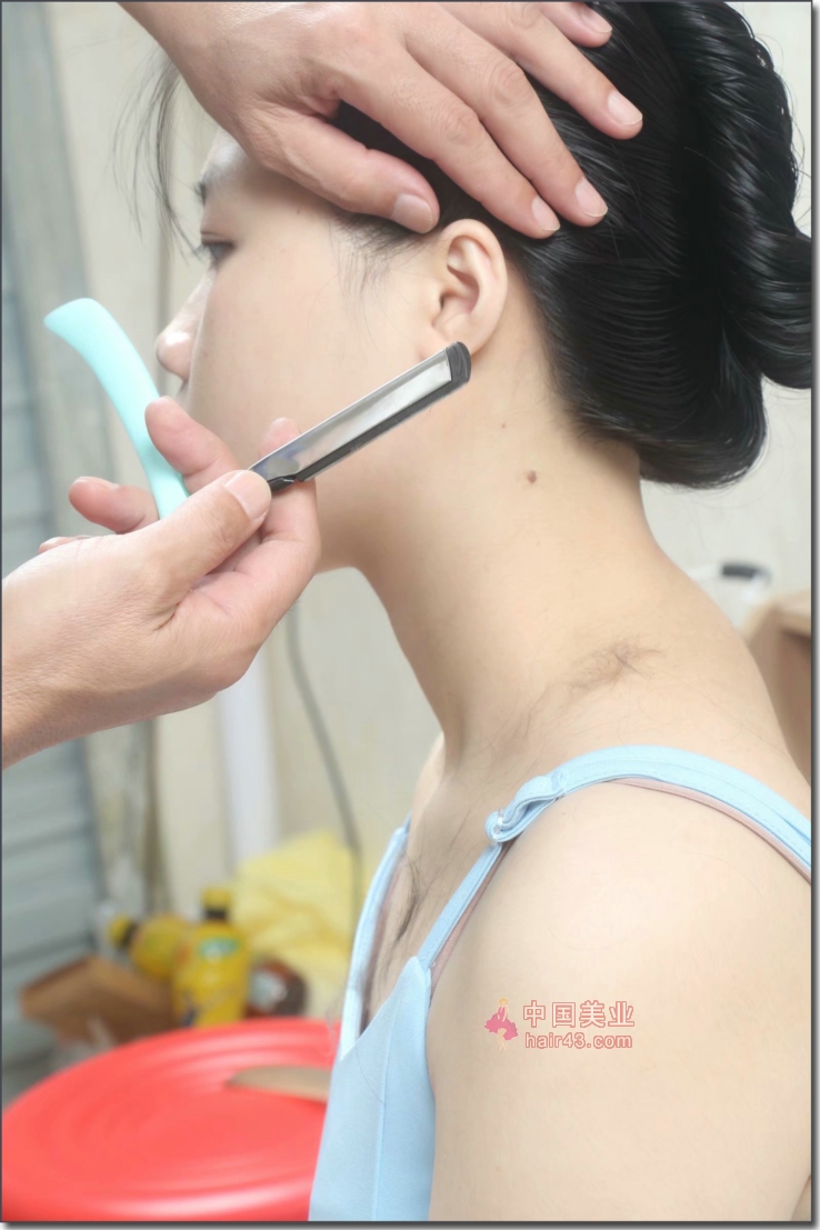 长发实习女生先洗后剪剃空后脑-发之美475#