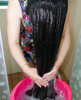 来自山东济南的龚延秋,今年40岁,是长发秀千里组合中最年轻的,蓄发18年,如今发长2.5米。龚延秋从事商演工作,本身就喜欢长头发,头发越长越长之后就舍不得剪了。她平常会在洗发前使用过期的啤酒、牛奶,或者海带水、淘米水来浸泡头发,她说,洗发水起到清