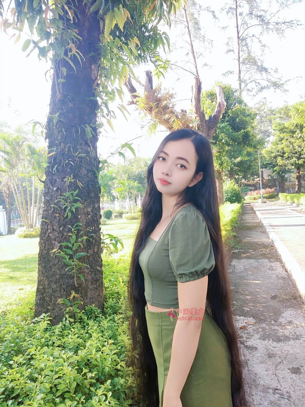 看看缅甸长发妹子的过膝长发照