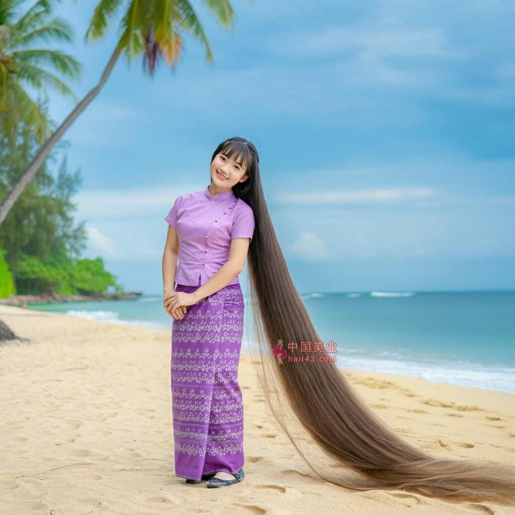 看看缅甸长发妹子的过膝长发照