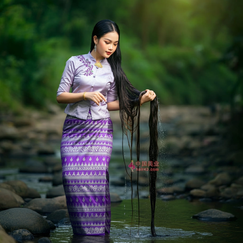 长发过膝的缅甸长发妹子