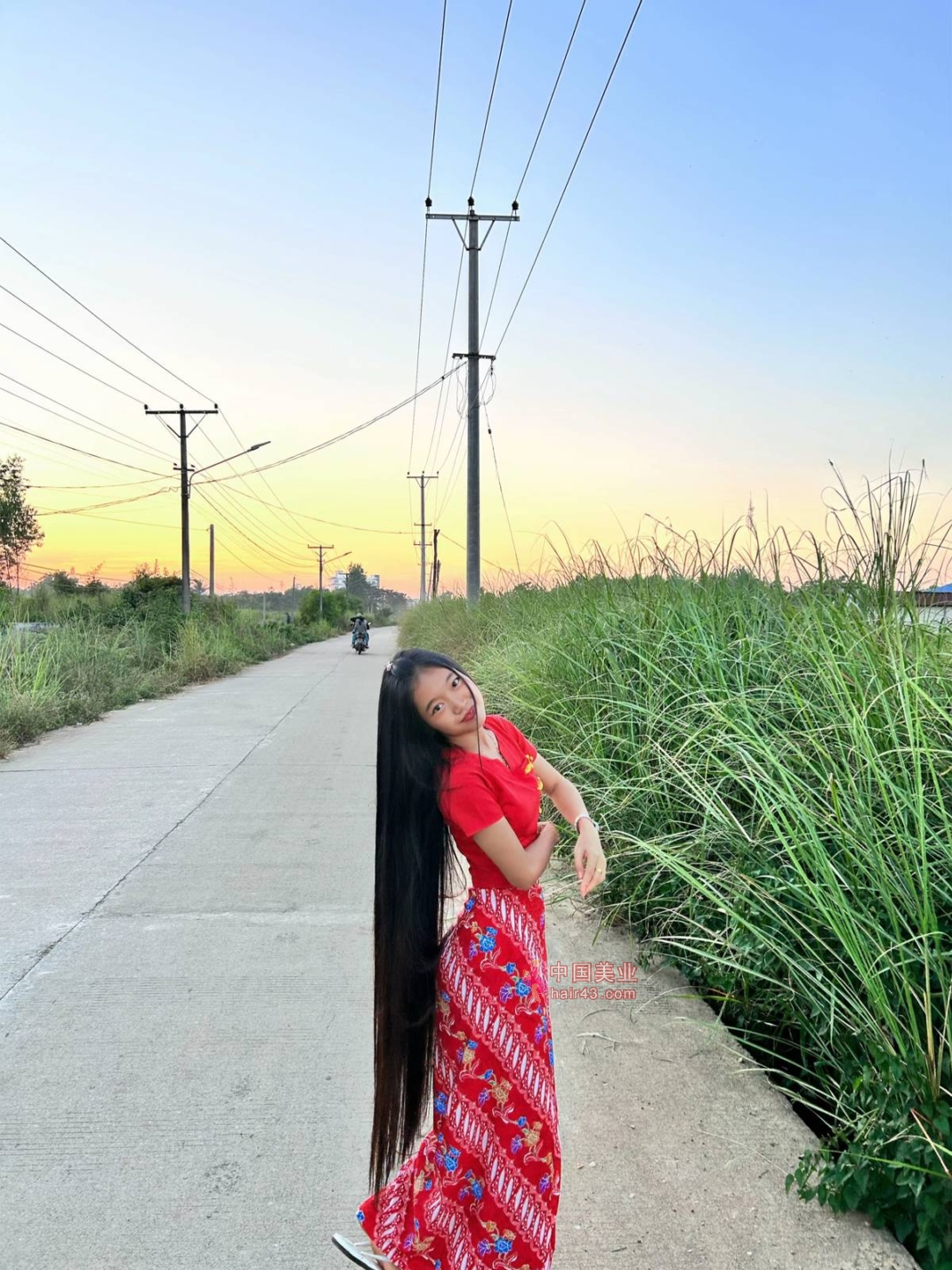 看看缅甸长发妹子的过膝长发照