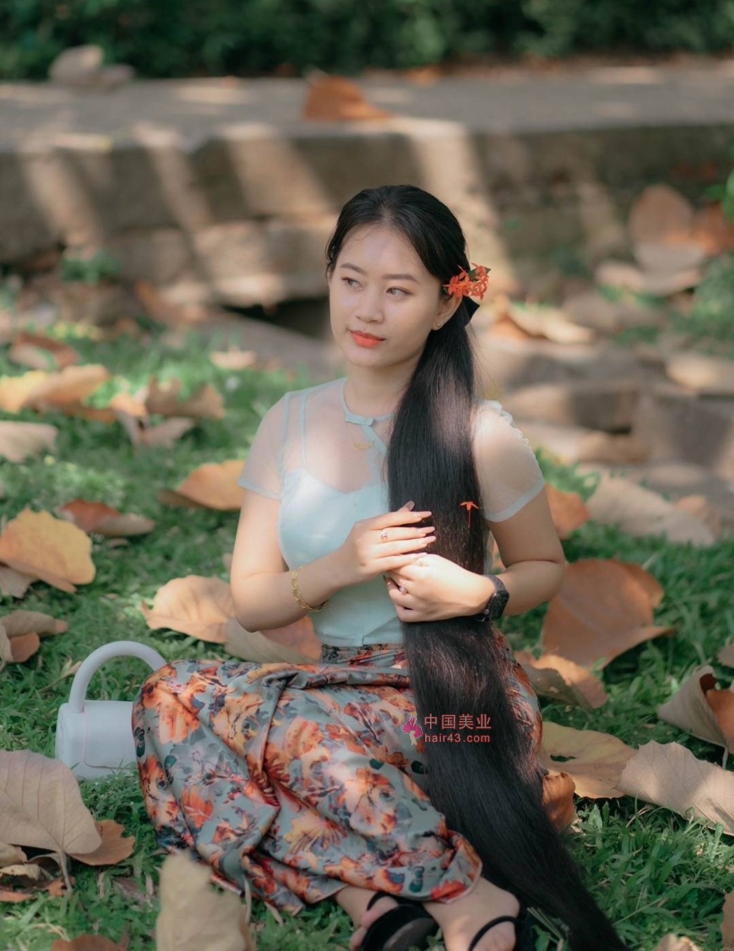 长发过膝的缅甸长发妹子
