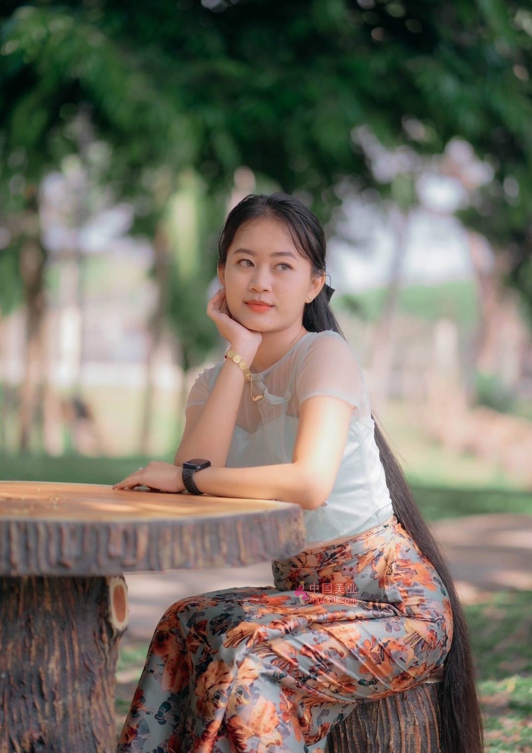 看看缅甸长发妹子的过膝长发照
