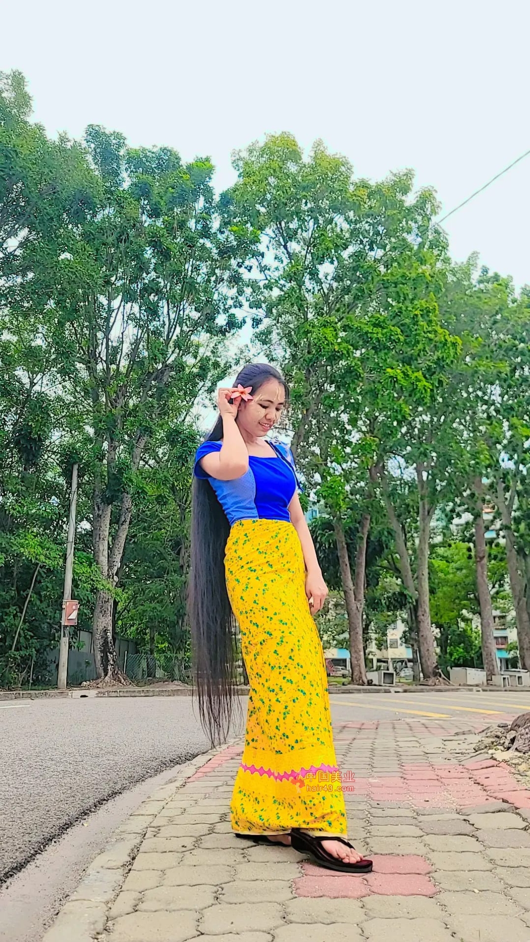 看看缅甸长发妹子的过膝长发照