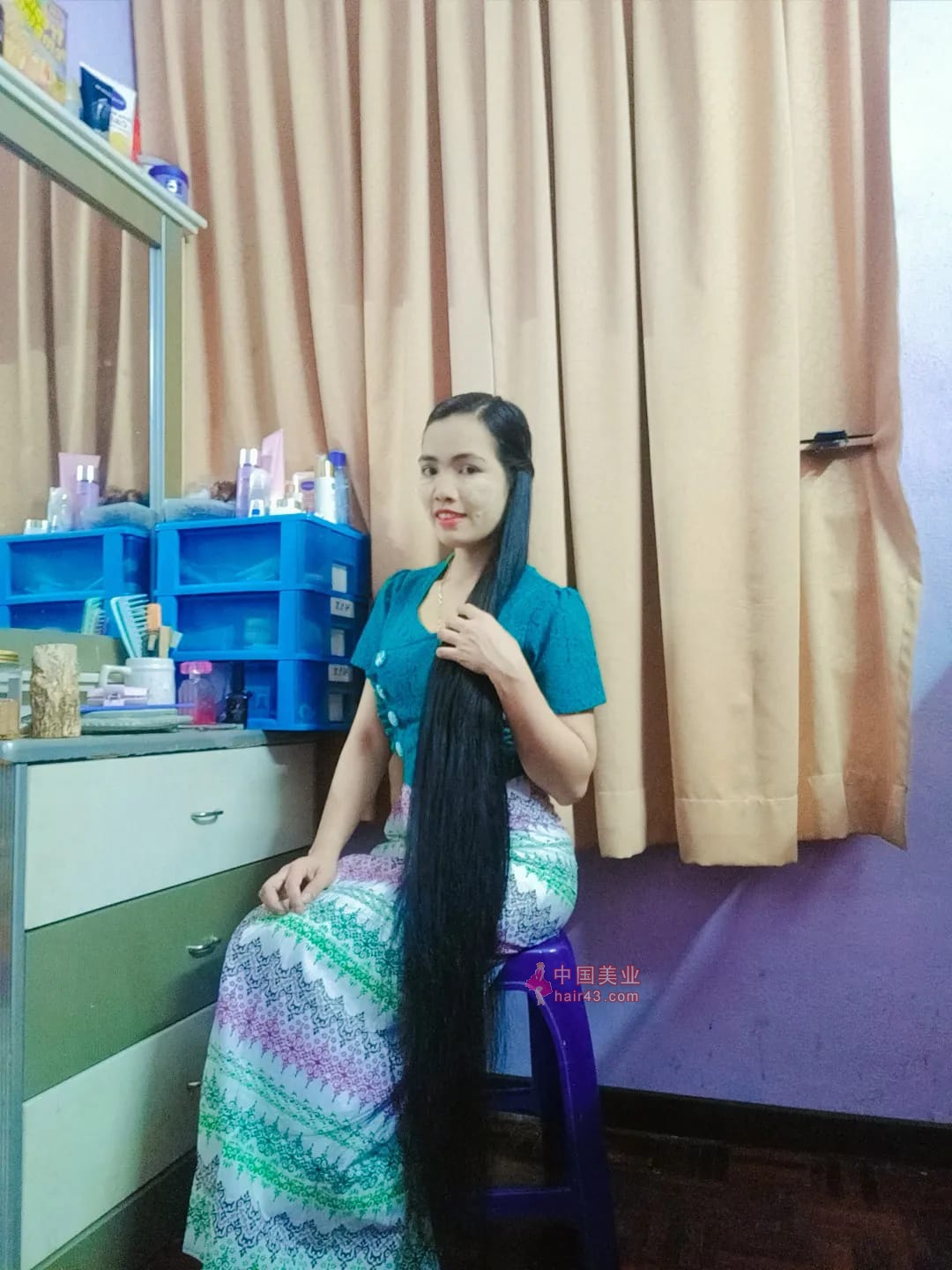 看看缅甸长发妹子的过膝长发照