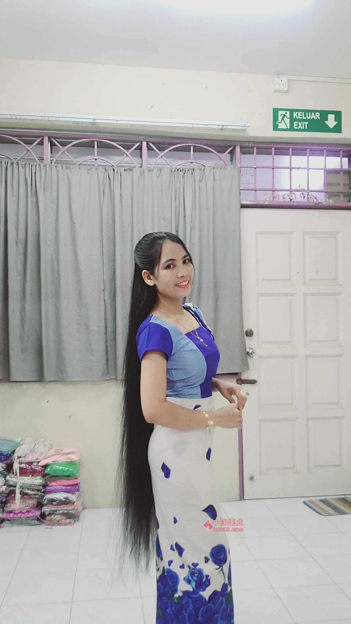 看看缅甸长发妹子的过膝长发照